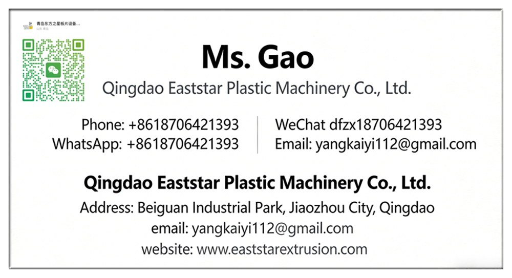 A Qingdao East Star Plastic Machinery Co., Ltd. egy műanyag lapok gyártására szakosodott fizikai gyár. Saját K+F csapattal és gyártóműhellyel rendelkezik. Nem csak könnyen kezelhető mezőgazdasági palánta PS lemezberendezést tud előállítani, hanem SBS-t is, 1000-3000 mm szélességi tartományban. Ugyanakkor személyre szabott berendezéseket is feldolgozhatunk az ügyfelek igényei szerint. Gépünk javítja a termelés hatékonyságát, csökkenti a munkaerőköltségeket és biztosítja a termékminőség stabilitását