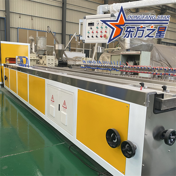 A PVC fa-műanyag kompozit panel berendezések egy automatizált gyártósor, amely PVC gyantát és faport/bambuszport használ alapanyagként. Keverési, olvadékextrudálási és vákuumformázási eljárásokkal faszemcsés kompozit paneleket állít elő. Az alapelemek közé tartozik egy kúpos ikercsigás extruder, speciális formák, egy vákuumformázó asztal, egy vonógép és egy vágógép.